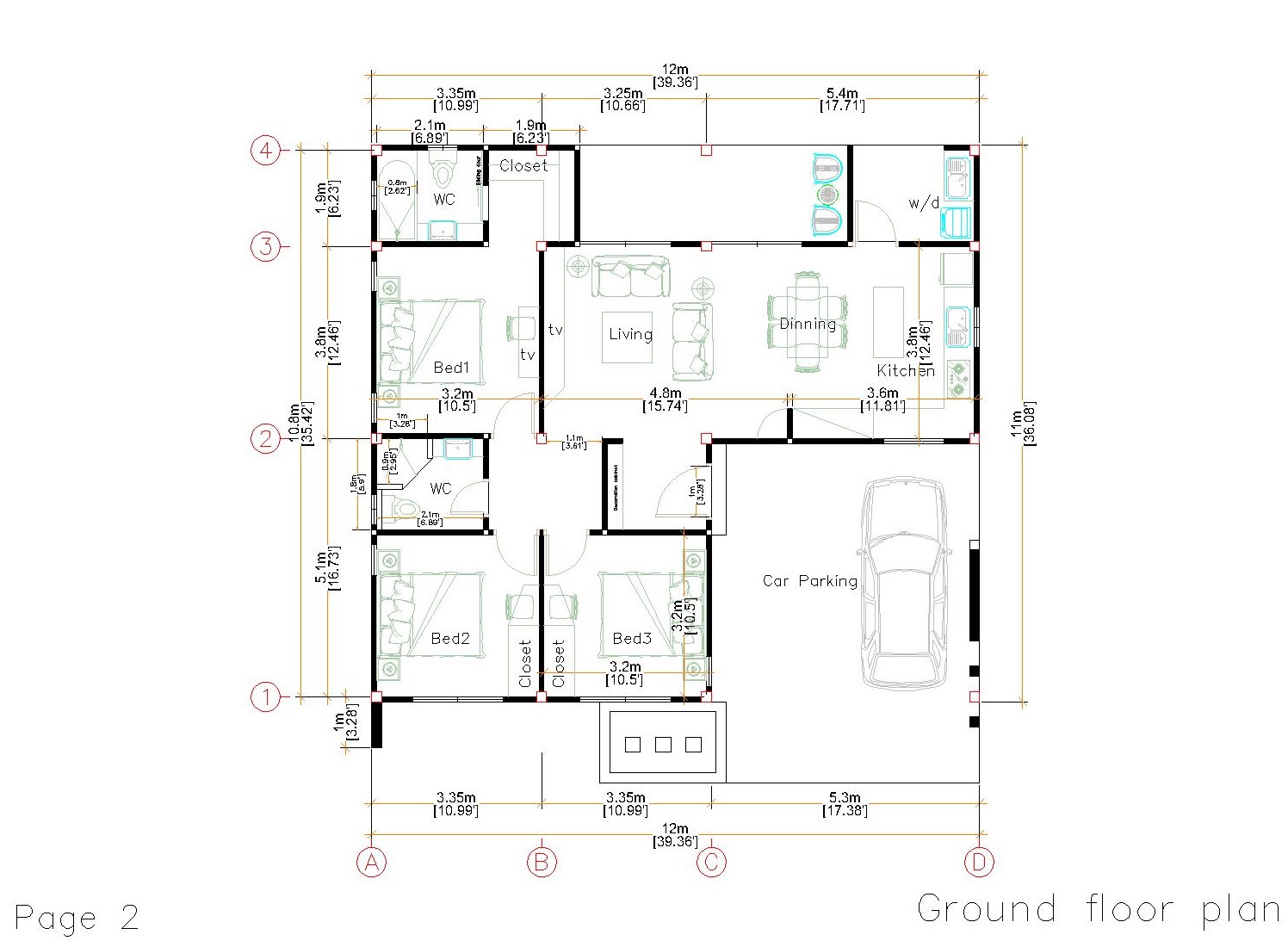 12×11 Small House Plan 3 Bedrooms 40×36 Feet Flat Roof. This villa is modeling by SAM-ARCHITECT With 1 stories level. It’s has 3 bedrooms. Est. Price around 40-45k usd construction only, furniture not include.