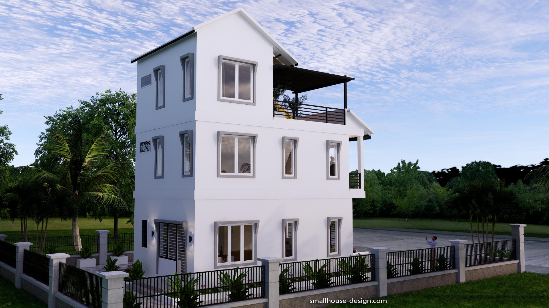 18×26 Small House Plan 3 Beds 3 Story Levels 5.5×8 Meter PDF Full Plans. This villa is modeling with 3 stories level. It’s has 3 bedrooms. Est. Price around 32-38k usd construction only, furniture not include.