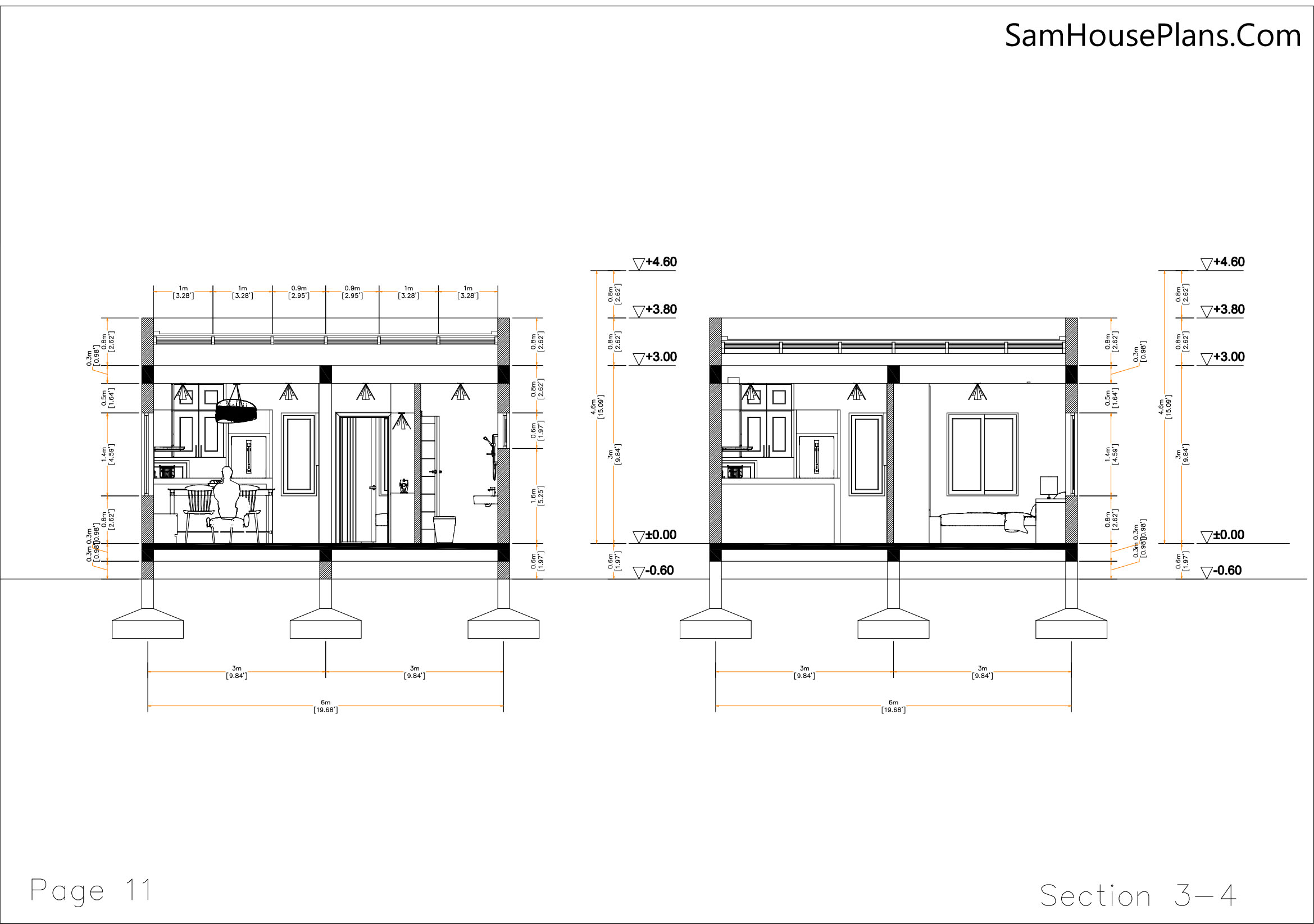 House Plan Drawing 6×10 Meters 20×33 Feet 2 Beds