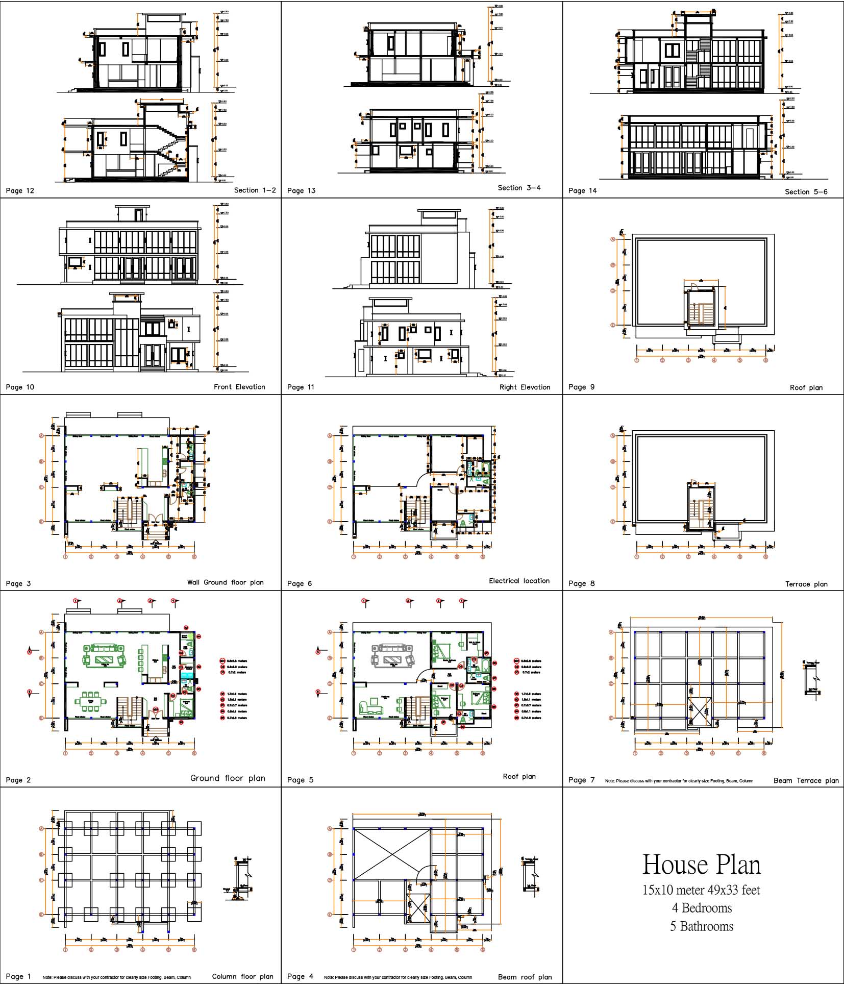 House Design Plan 15×10 Meter 49×33 Feet 4 Beds PDF Full Plans. This villa is modeling With 2 stories level. It’s has 3 bedrooms. Est. Price around 60-80k usd construction only, furniture not include.