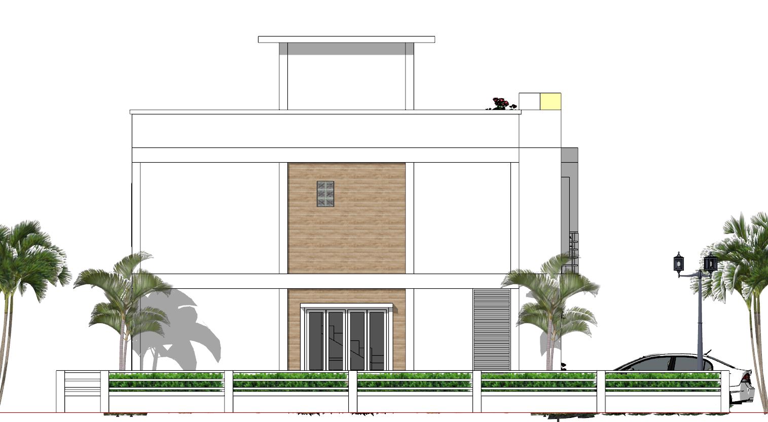 Similarly, to the roof border color we choose a bite dark and light color combination together with a big glass door and window to get the house look so beautiful and Modern house.