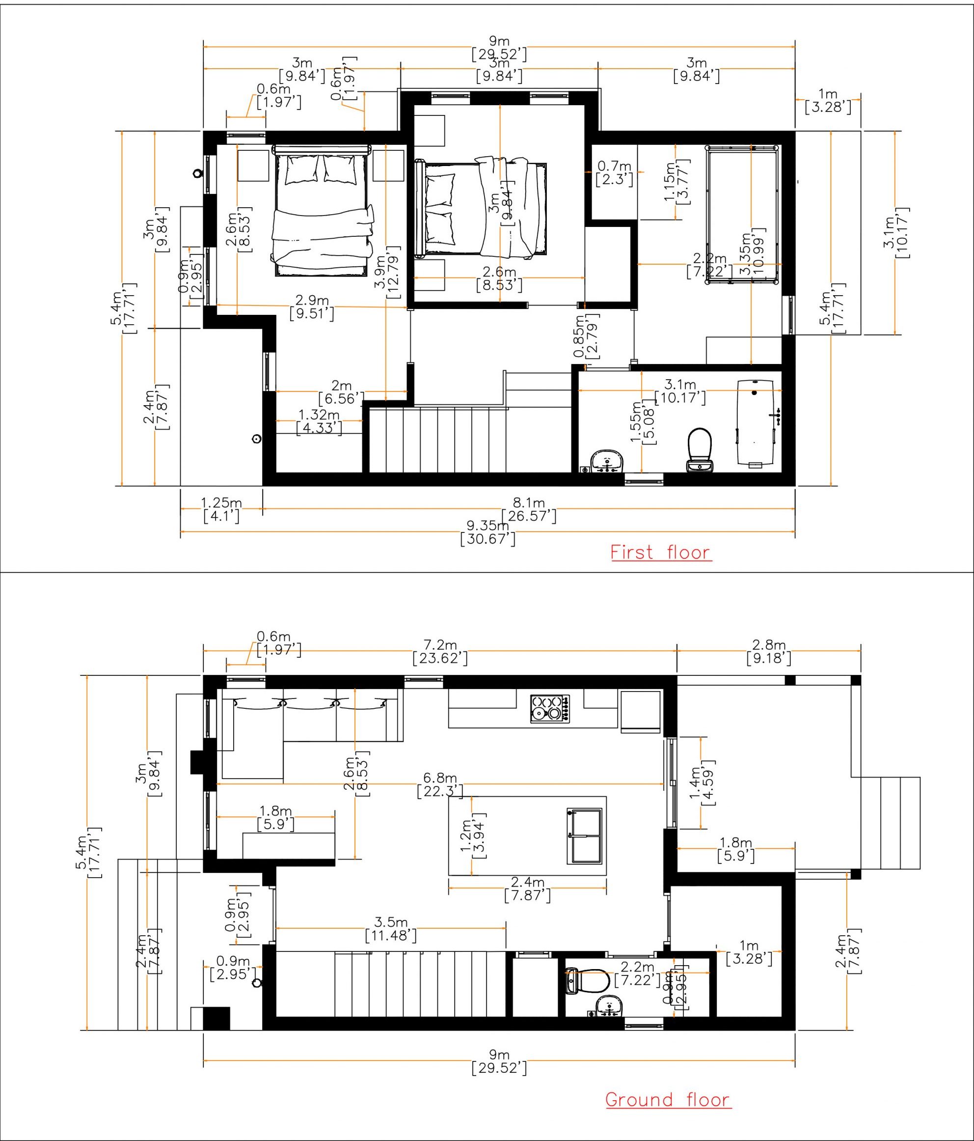 Small Home Floor Plans 9×6 Meter 30×20 Feet