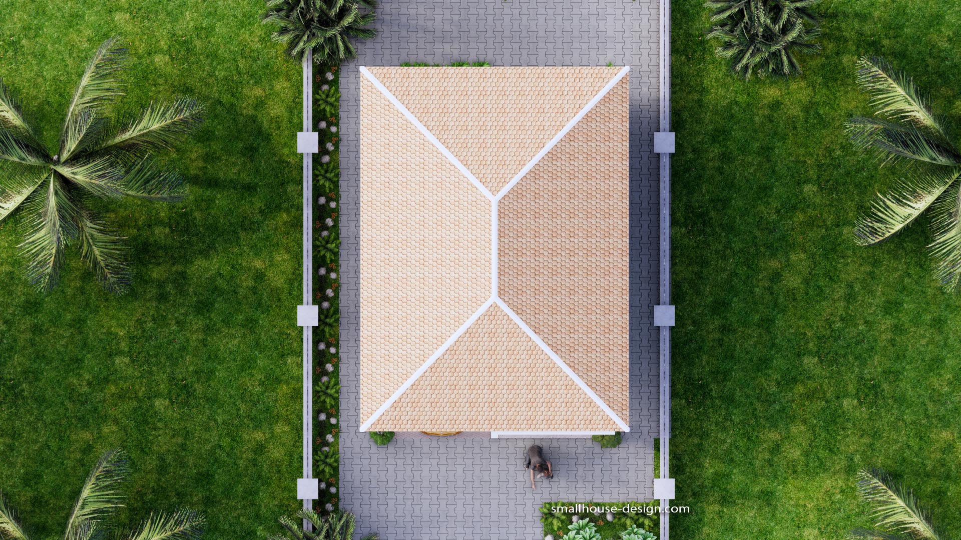 Finally, The Hip roof type is made from zine roof tiles that cover above Gypsum board ceiling . It is make the house look simple and modern.