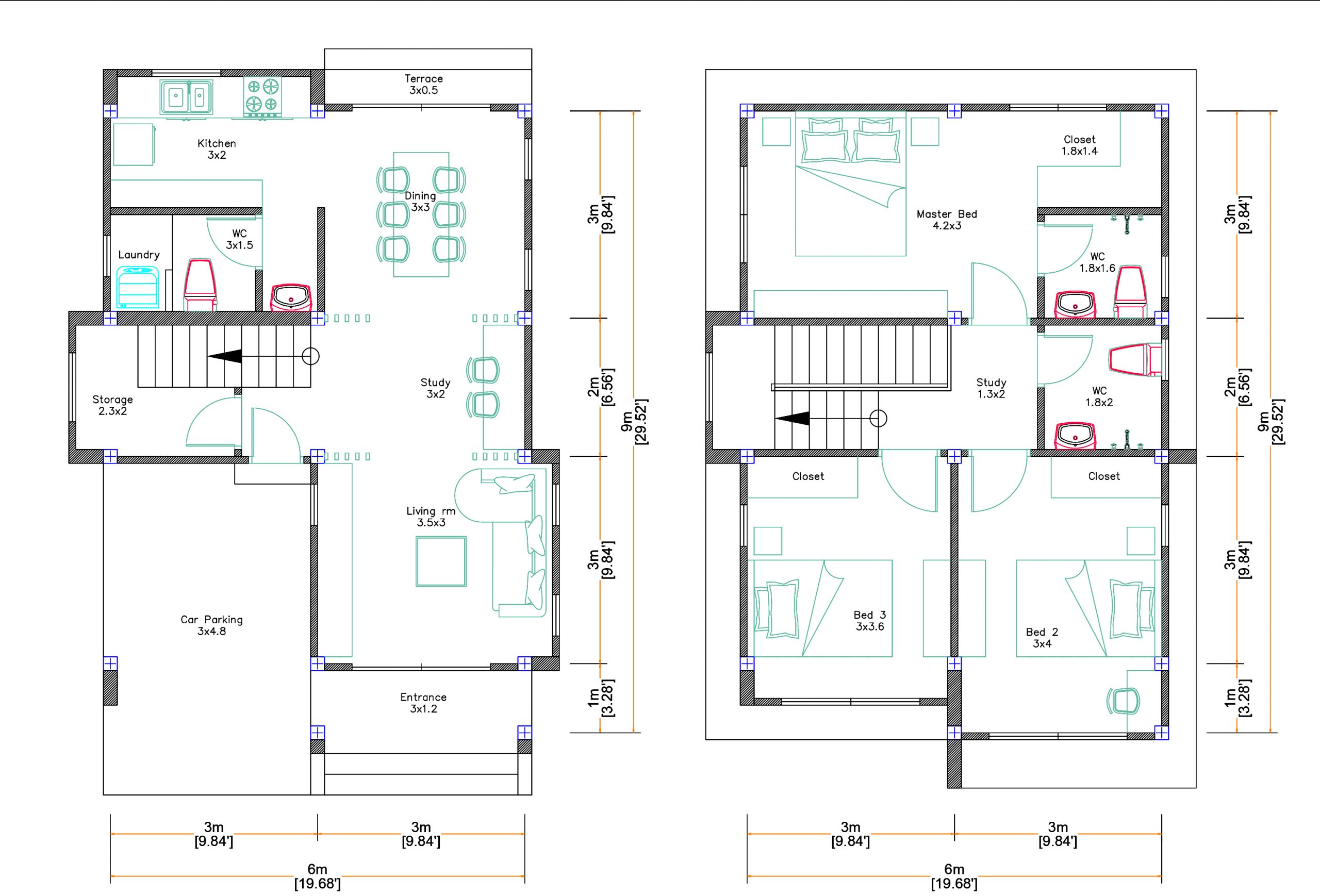 Small Home Floor Plans 9×6 Meter 30×20 Feet