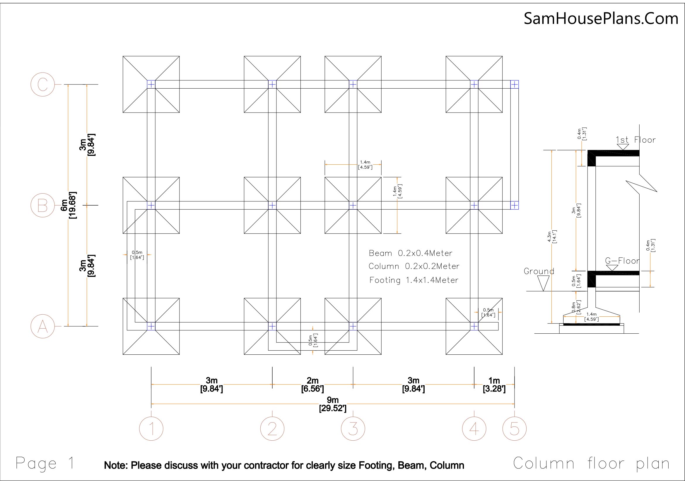 Footing, Beam, Column Location plan