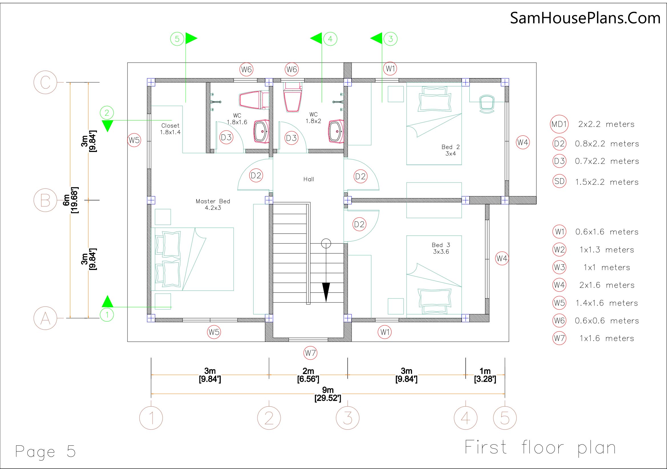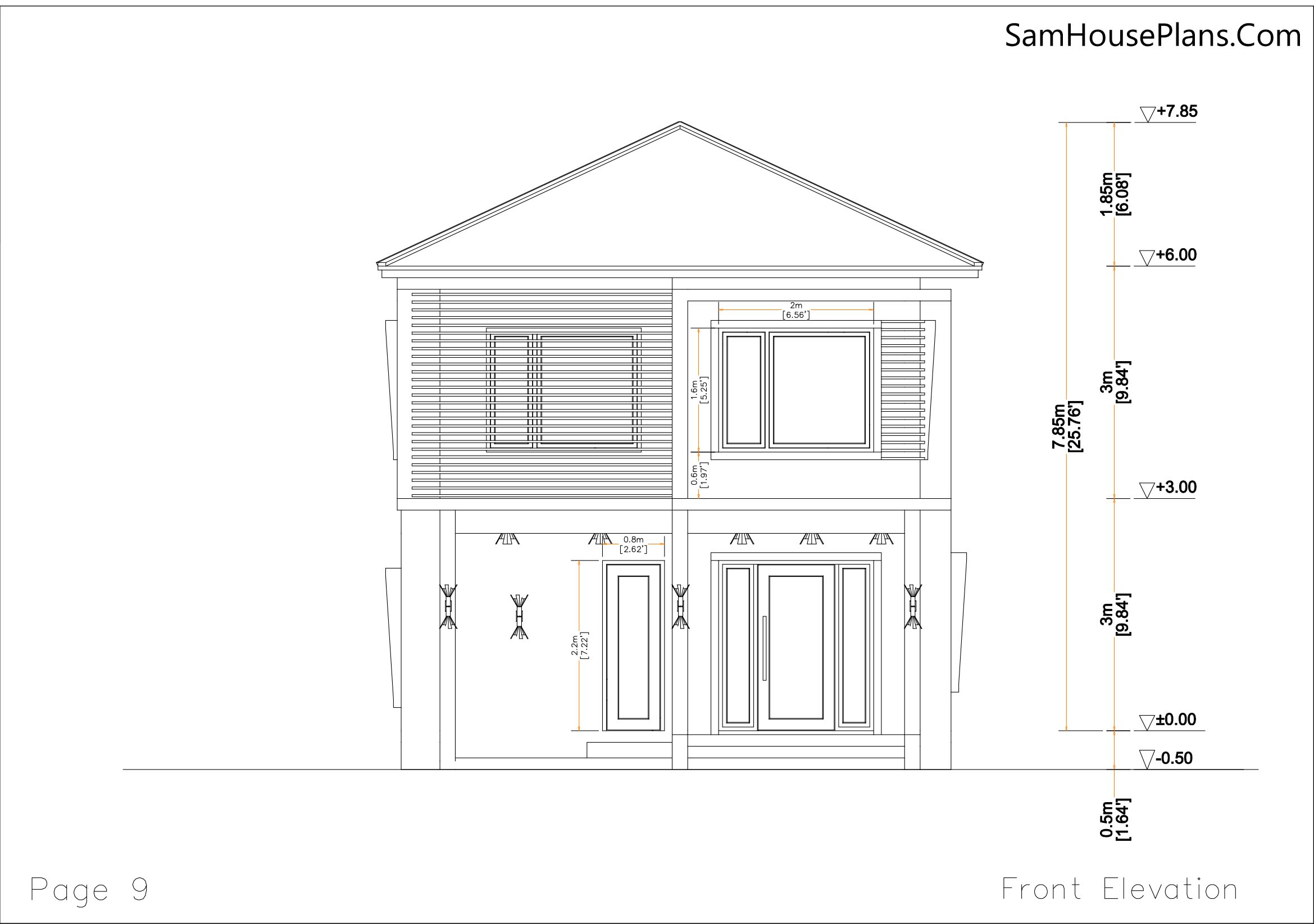 Building size: 20 feet wide, 30 feet deep. 6×9 meter 2 floor