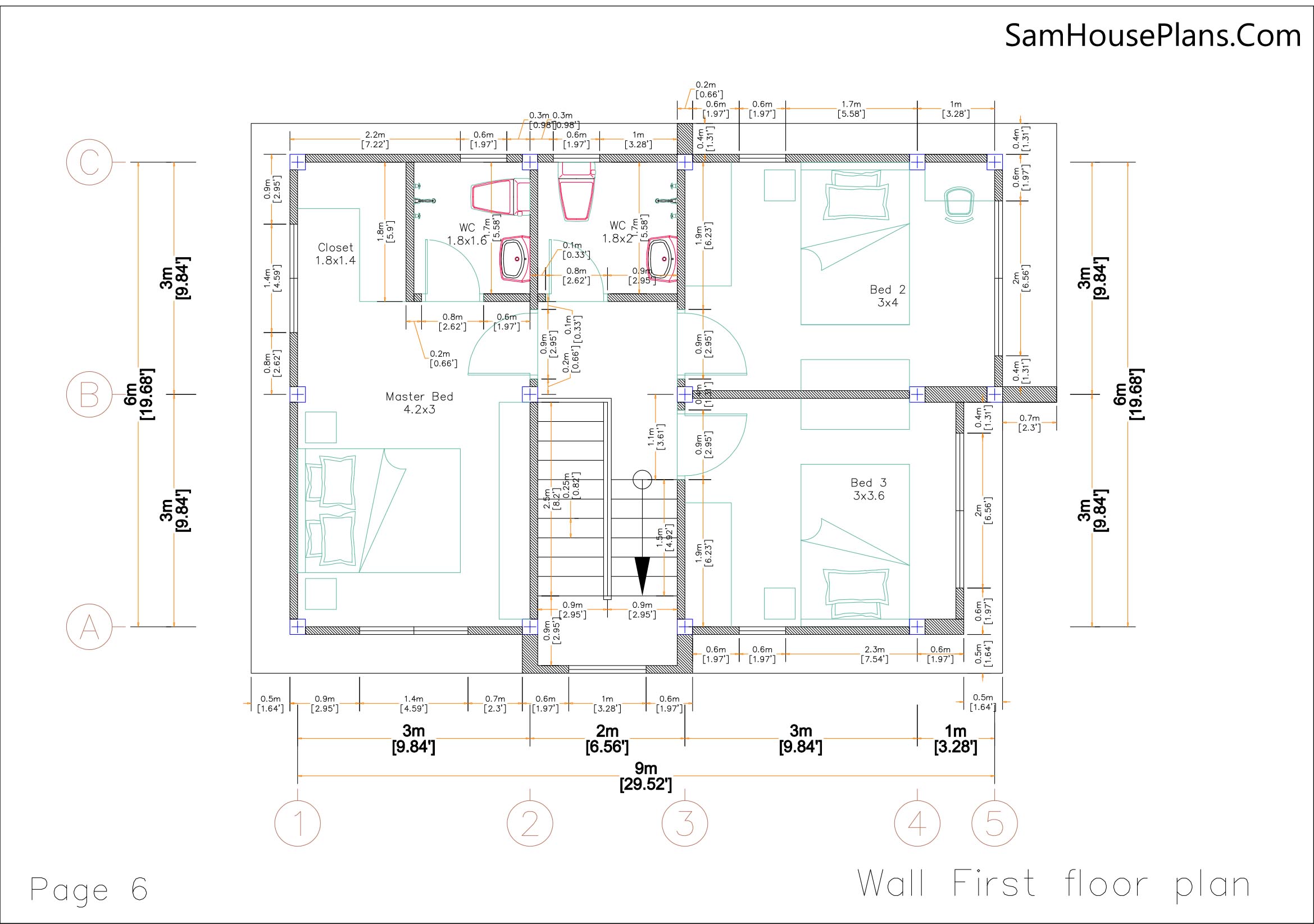 Small House Design 6x9 Meter 20x30 Feet 3 Beds 3 Baths All layout plan