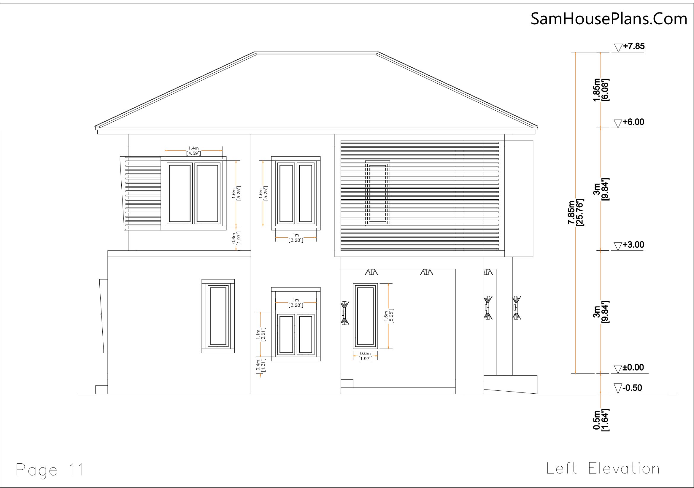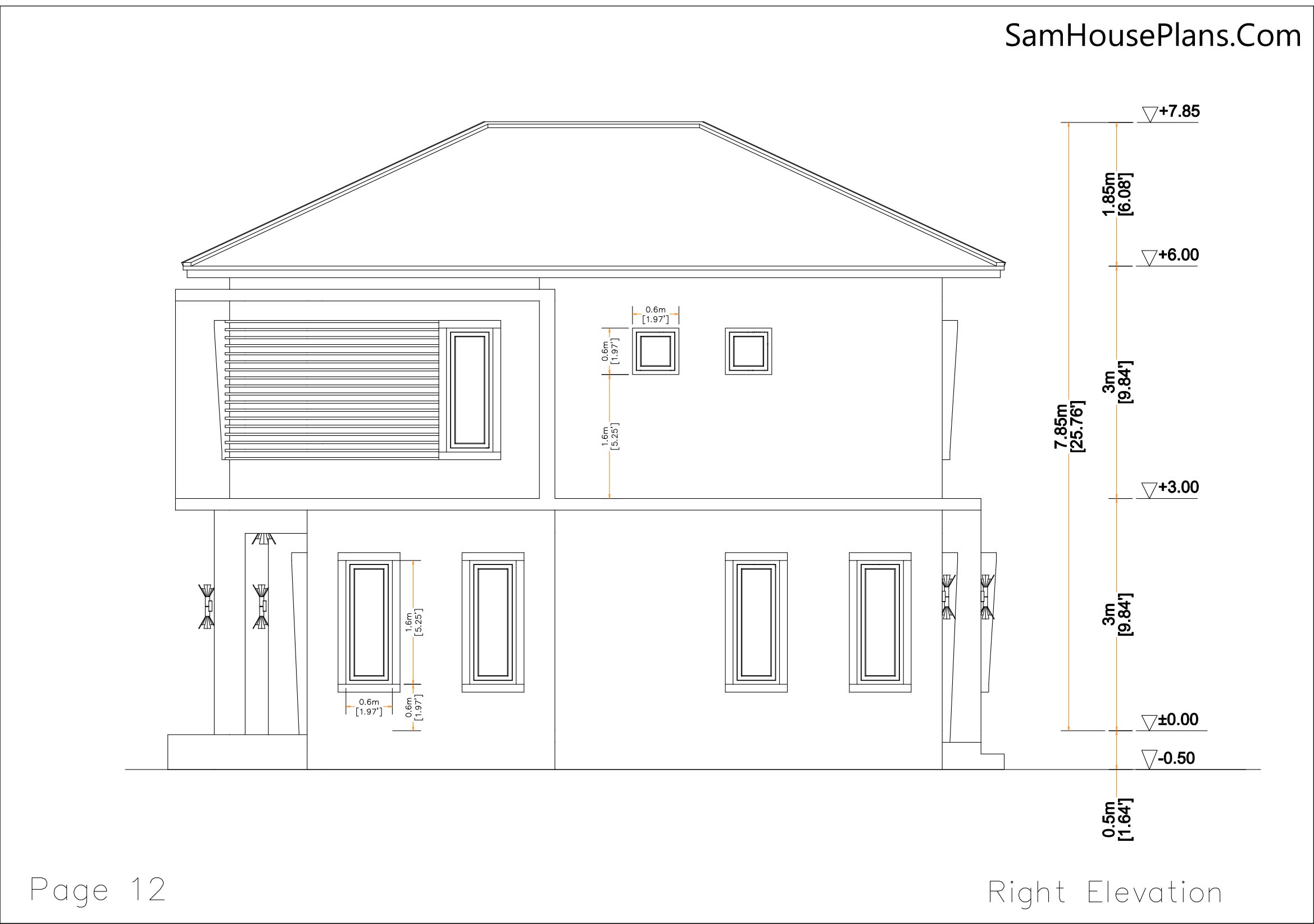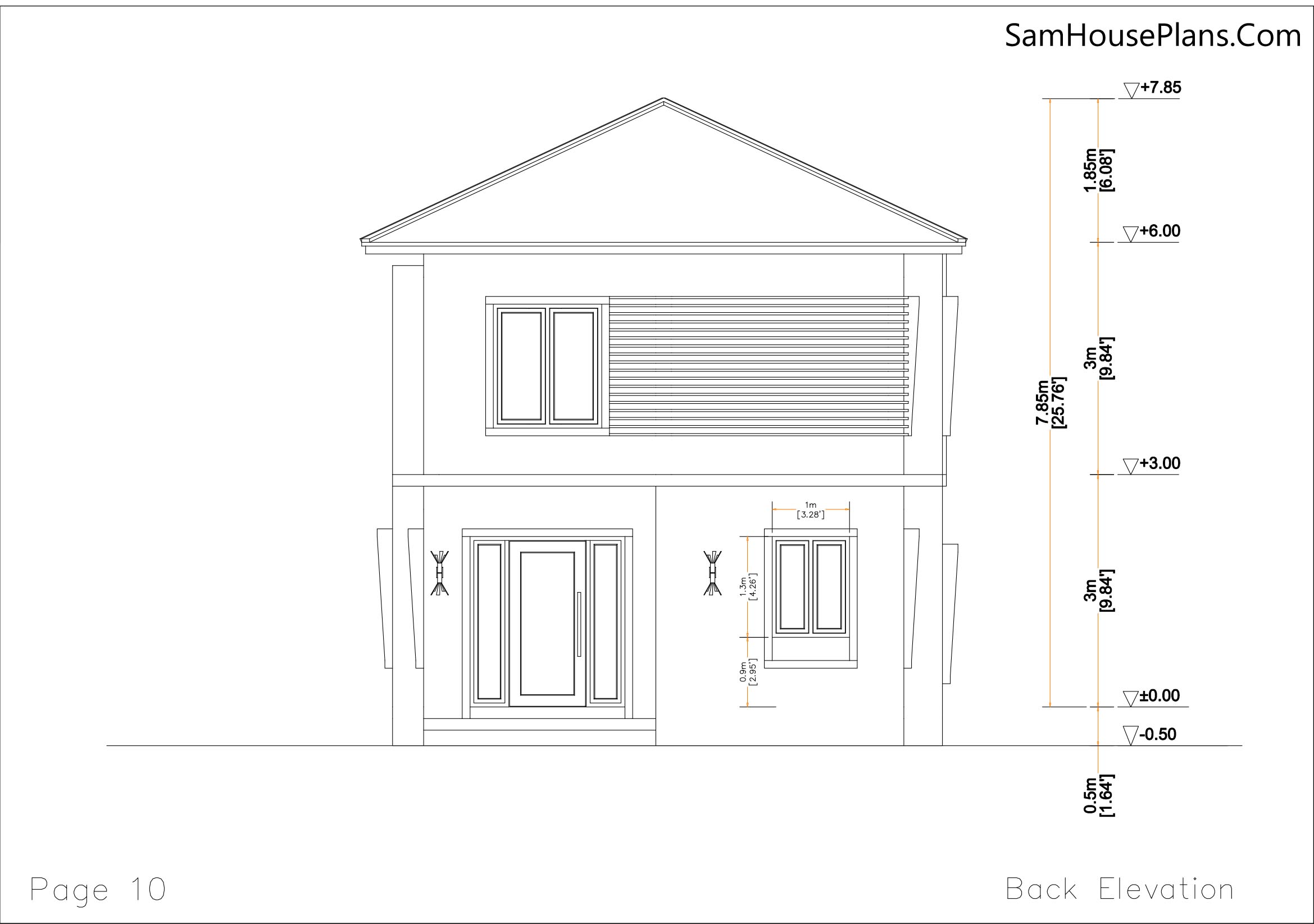 -PDF Front, Back, Left, and Right Elevation Plan with dimension. 4 Sections