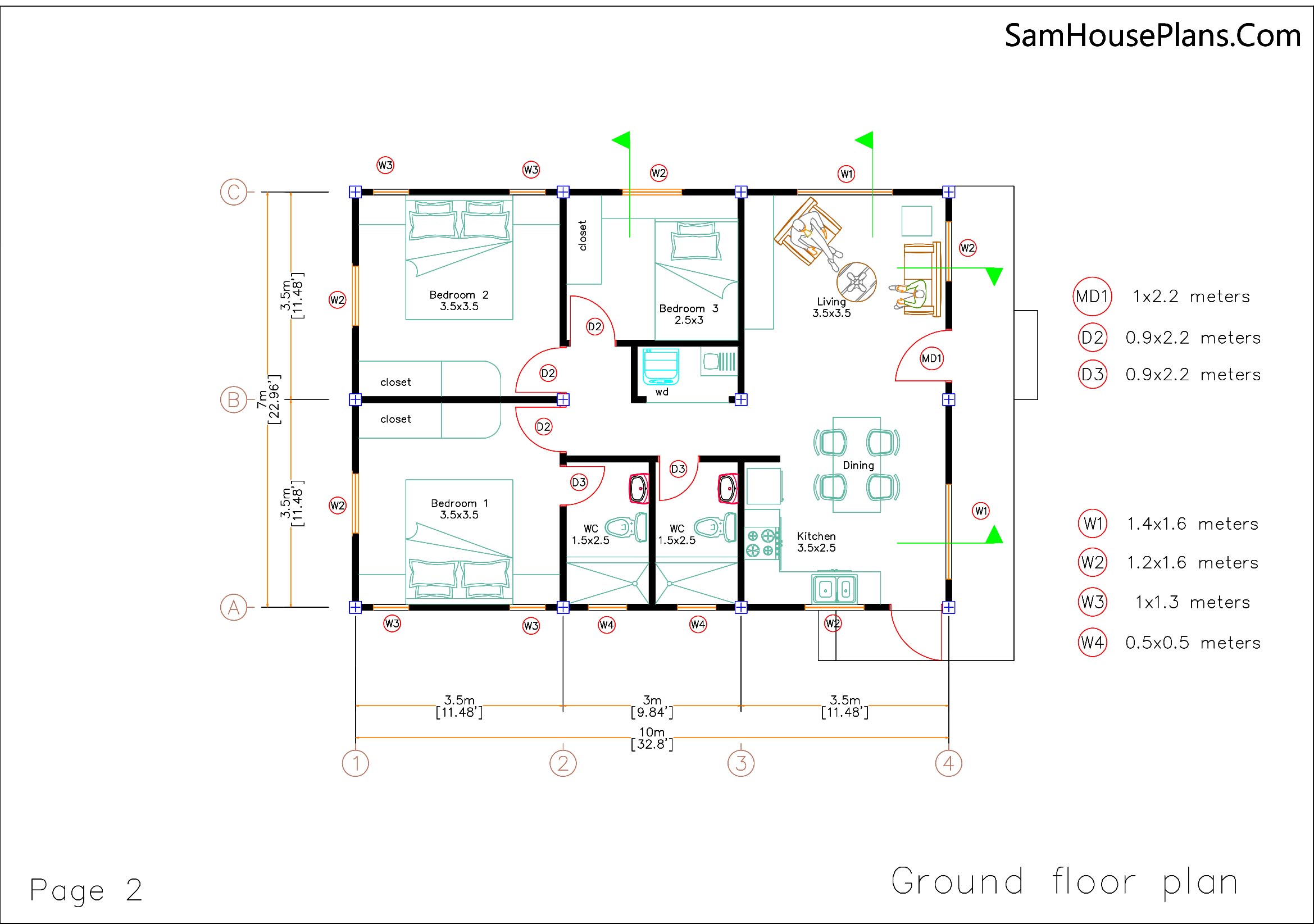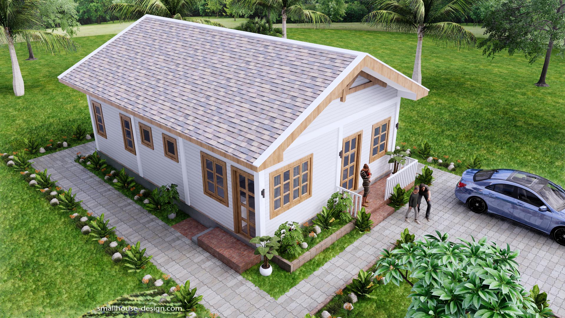 Small House Design 7×10 Meter 3 Beds PDF Plan 2 Bathrooms Gable Roof. This villa is modeling by SAM-ARCHITECT With 1 stories level. It’s has 3 bedrooms. Est. Price around 18-25k usd construction only, furniture not include.