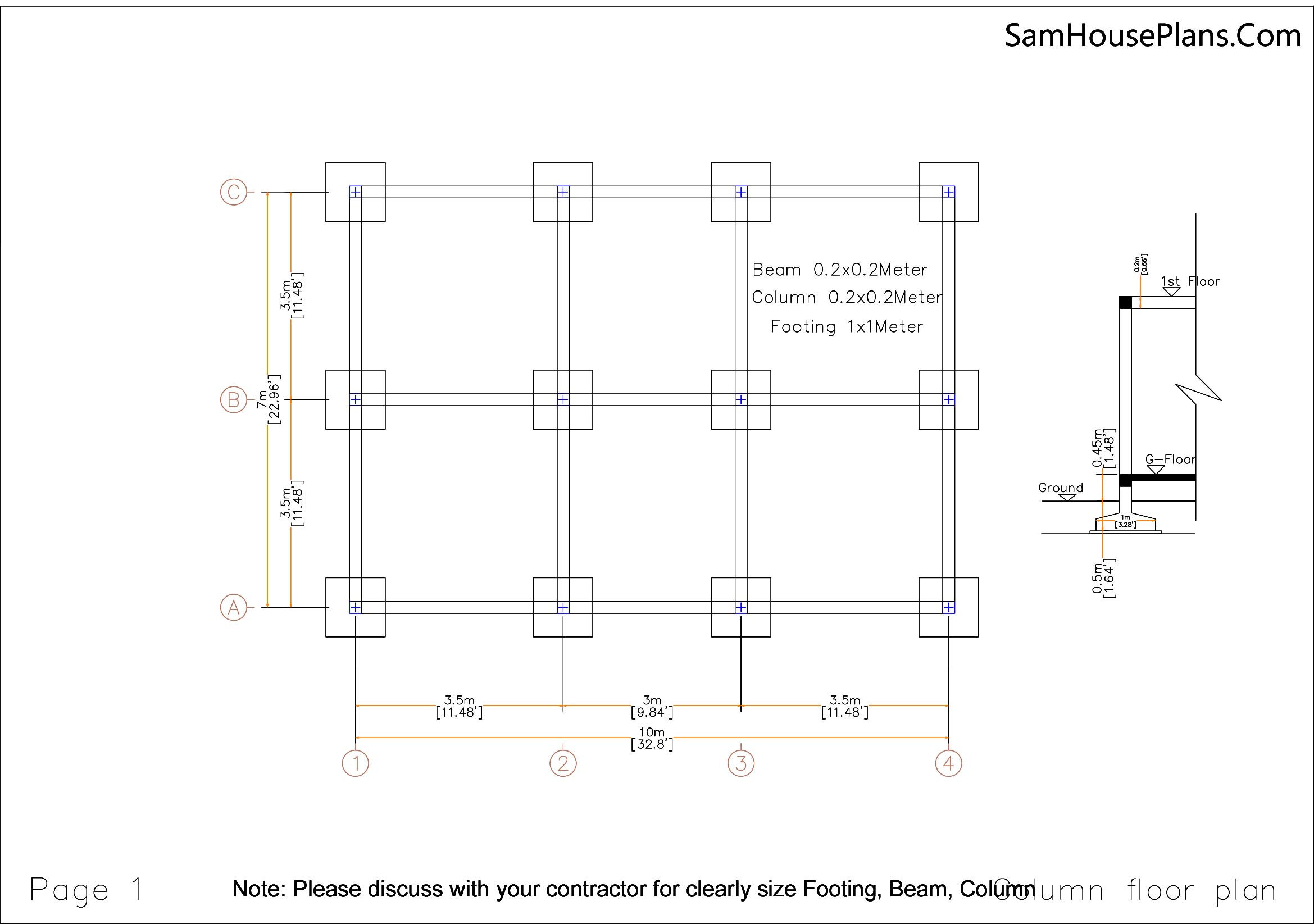 Footing, Beam, Column Location plan