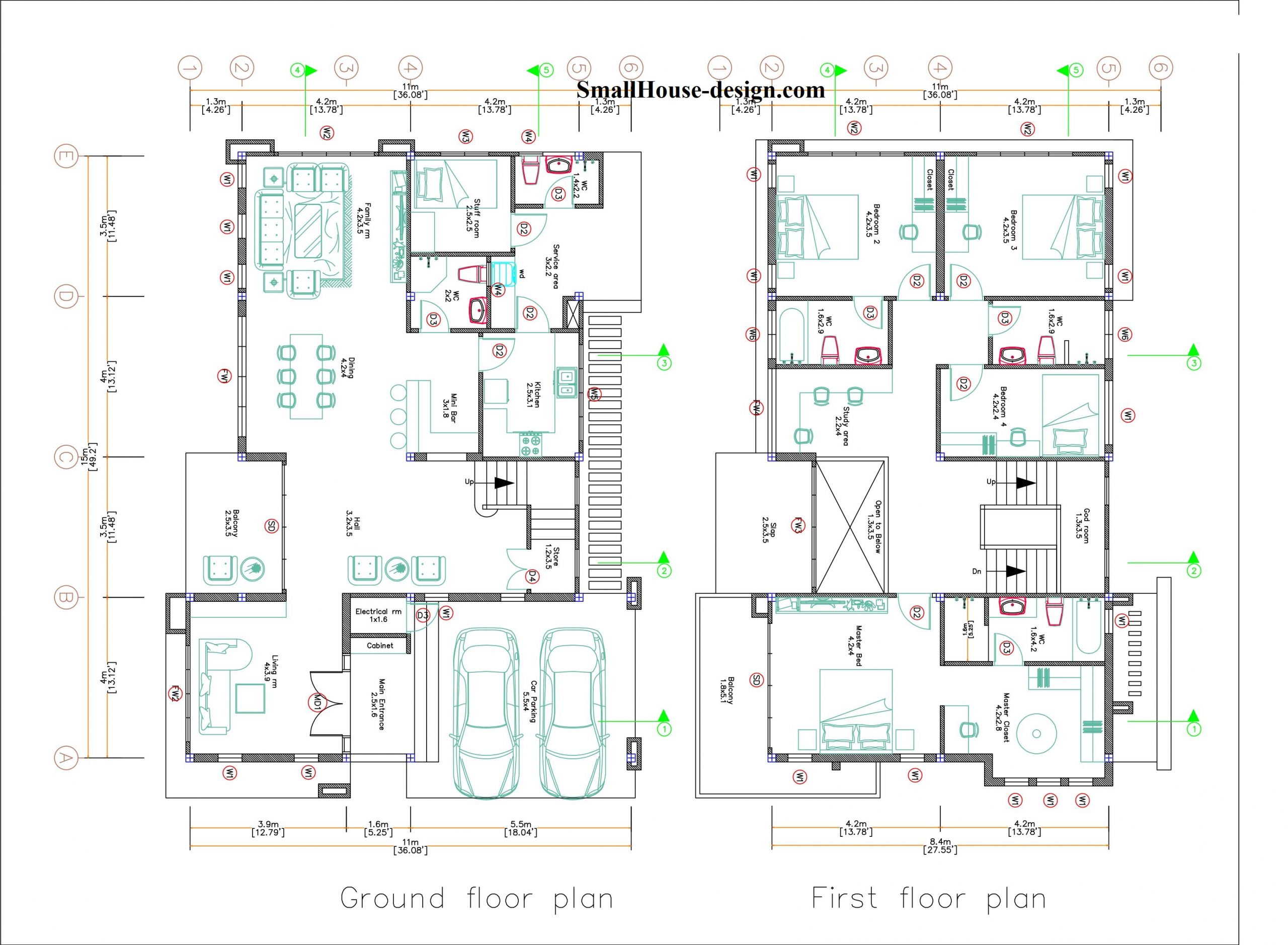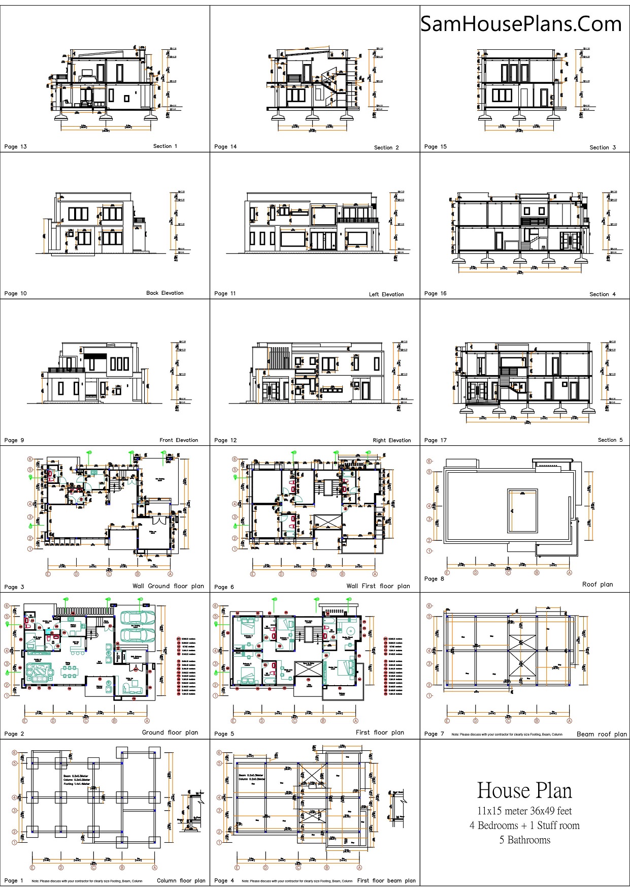 Small House Plan 11×15 M 36×49 Feet 5 Beds Full Plan PDF Plan. This villa is modeling by SAM-ARCHITECT With 2 stories level. It’s has 5 bedrooms. Est. Price around 120-160k usd construction only, furniture not include.