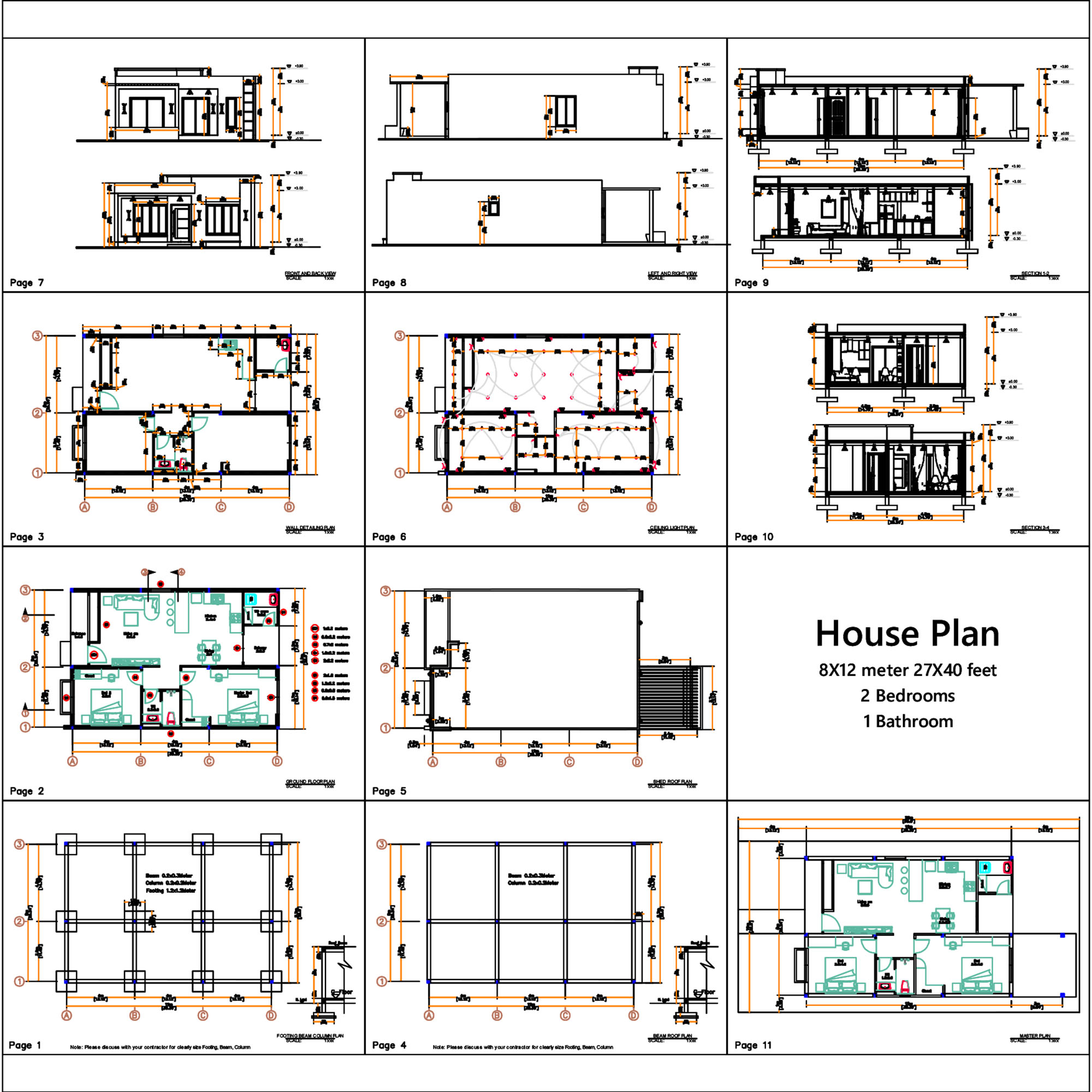 Small House Plan 8×12 M 27×40 Feet 2 Beds PDF Full Plans. This villa is modeling by SAM-ARCHITECT With 1 stories level. It’s has 1 bedroom. Est. Price around 28-32k usd construction only, furniture not include.